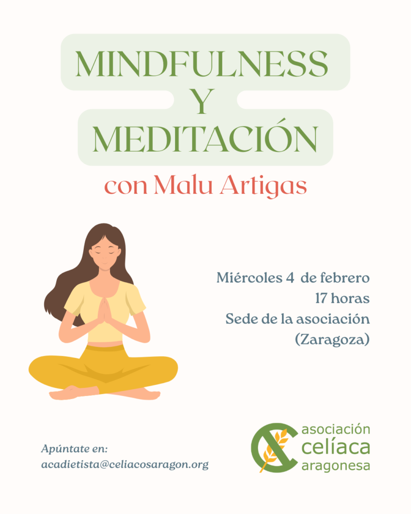 El 4 de febrero a las 17 horas, tendremos una nueva sesión de mindfulness y meditación con Malu Artigas, en la sede de la asociación de Zaragoza.