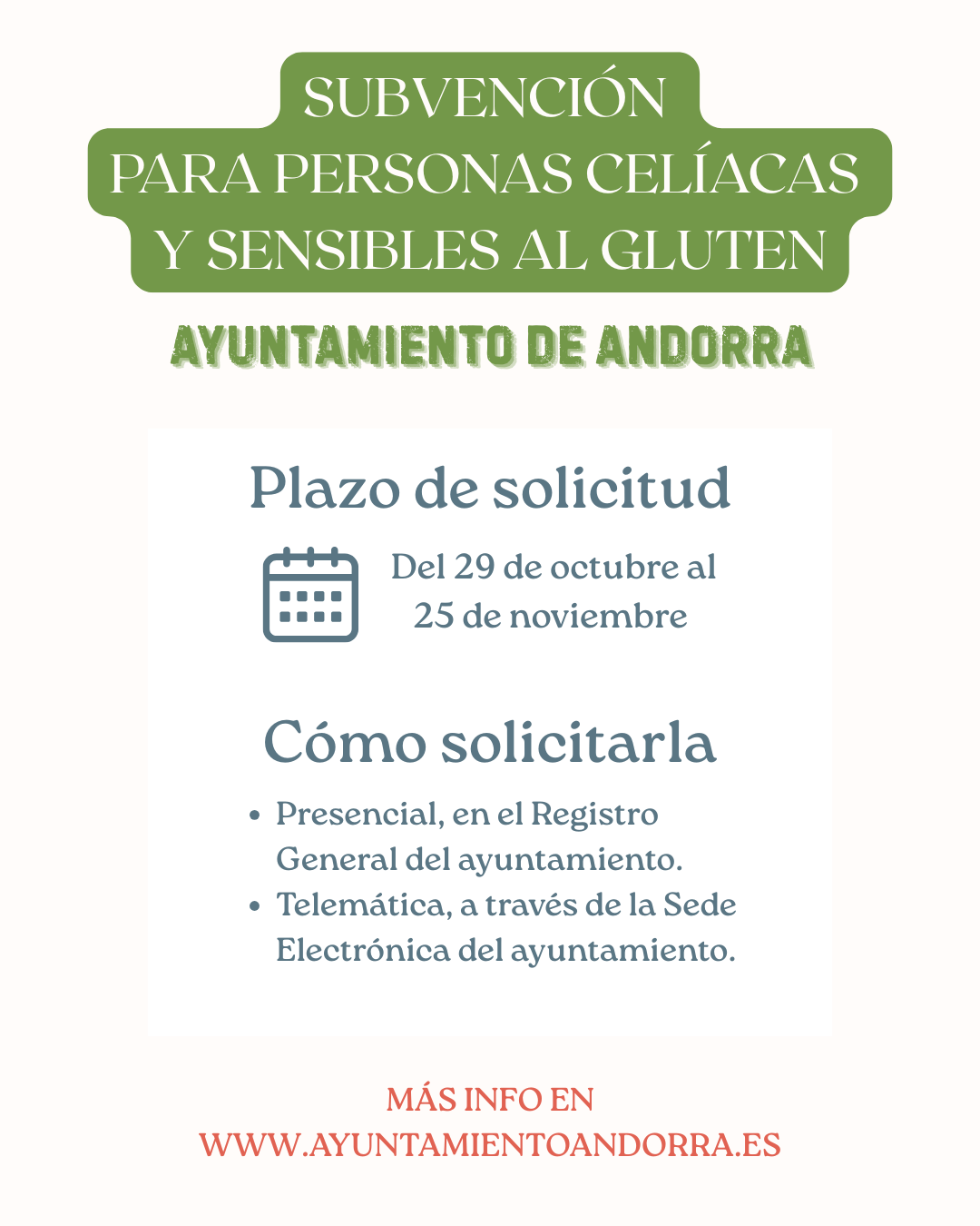 Solicitud de subvenciones para personas celíacas y sensibles al gluten del Ayuntamiento de Andorra