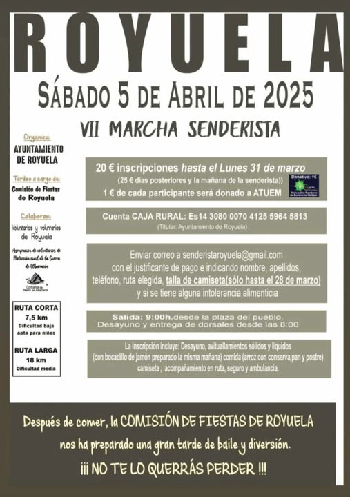 El sábado 5 de abril se realizará la VII Marcha Senderista en Royuela, localidad situada en la Sierra de Albarracín. Tanto en los avituallamientos como en la comida habrá opciones sin gluten para que todos puedan disfrutar de un día estupendo.