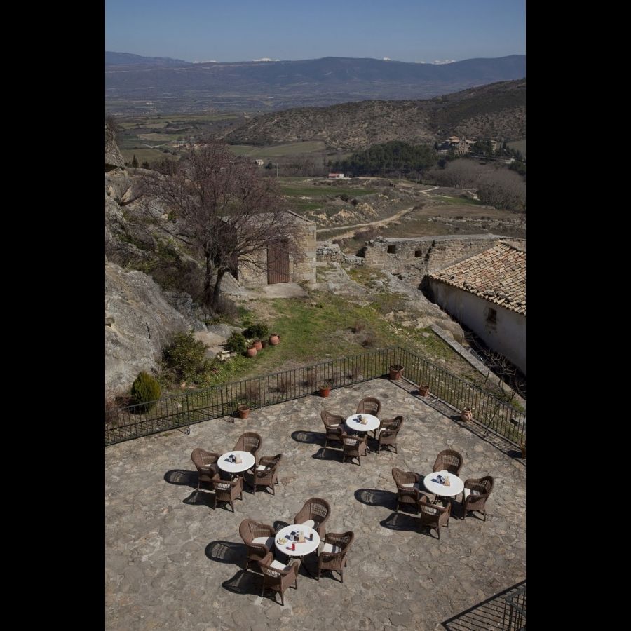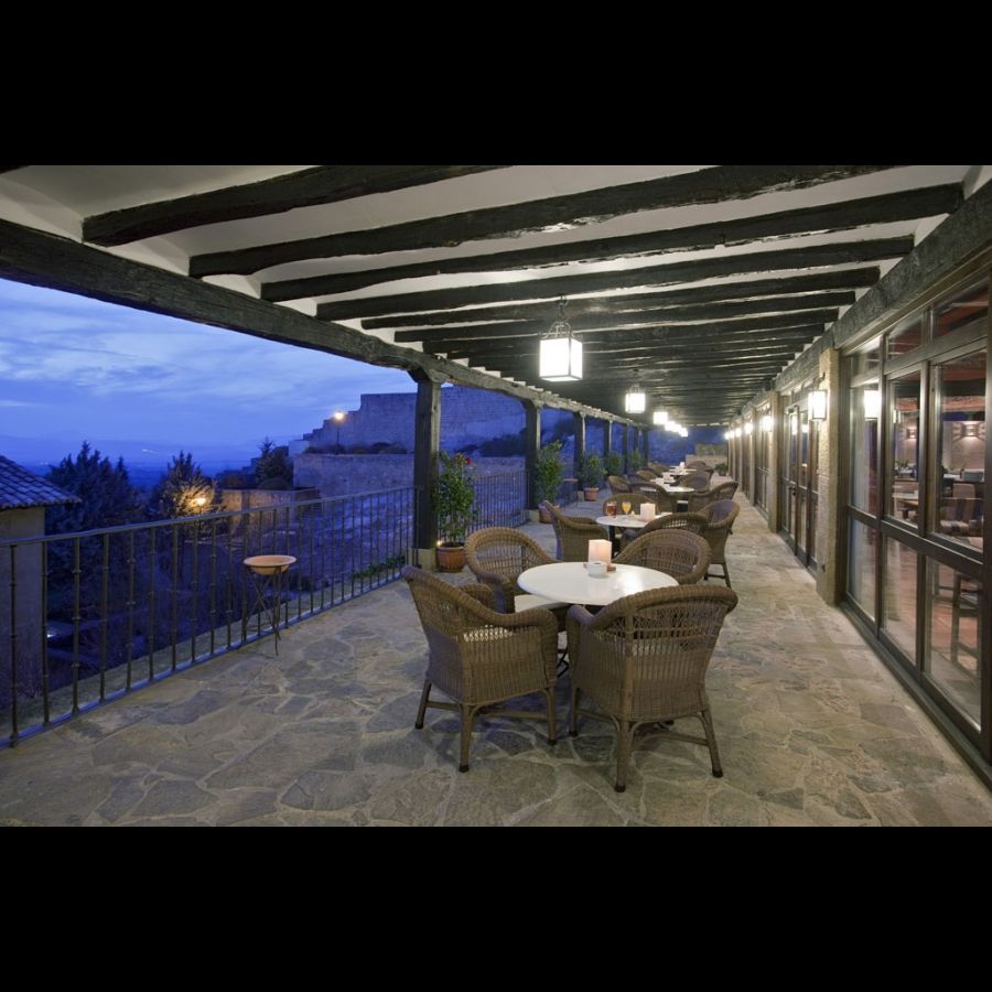 Si prefieres quedarte en la terraza, aquí puedes degustar una variada carta de cafetería con raciones y tapas, mientras disfrutas de las mejores vistas de la villa de Sos, del Valle del Río Onsella y la llanura de la vecina Navarra.